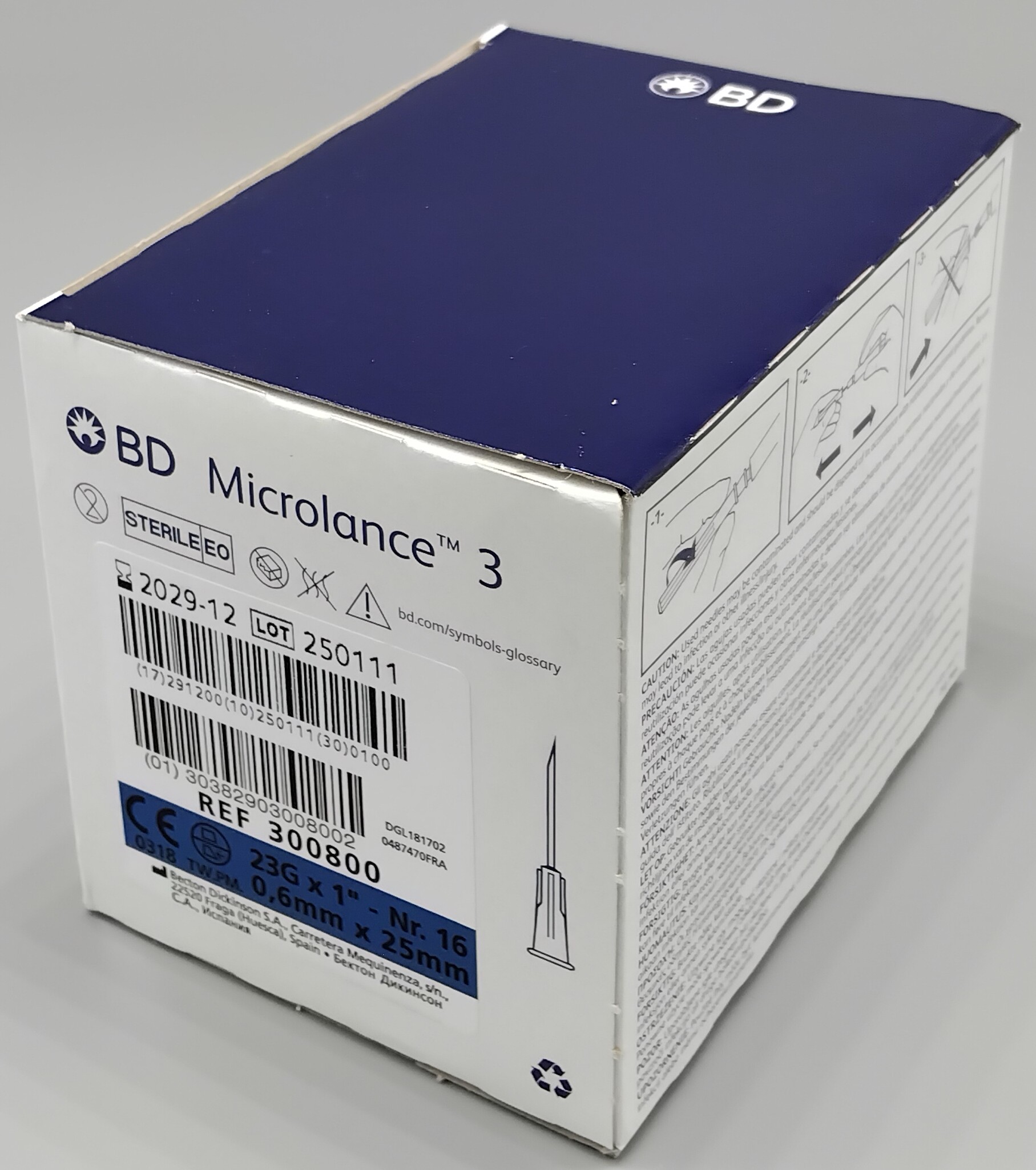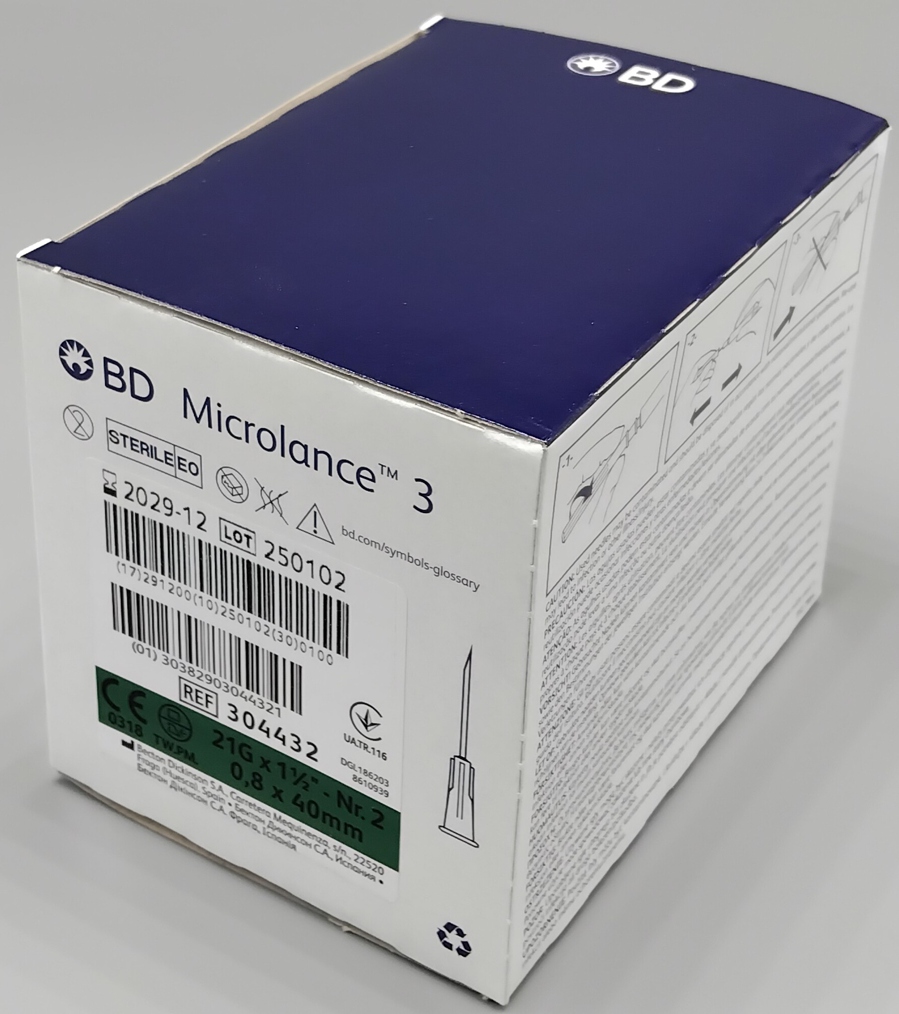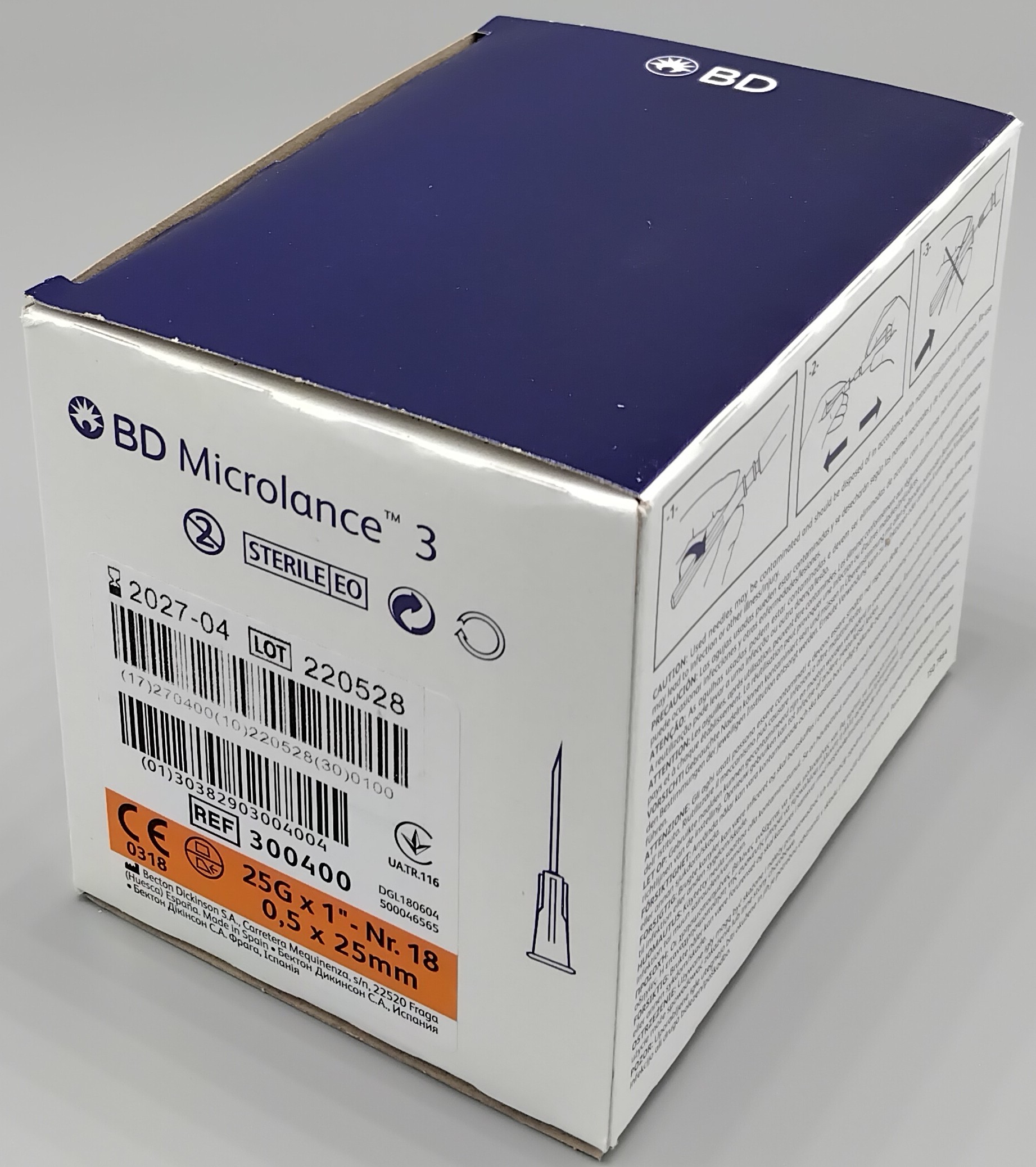 Aghi ipodermici cono luer realizzati in acciaio inossidabile AISI304 (per uso medicale) con parete sottile, levigata ad ultrasuoni e lubrificata con olio di silicone.