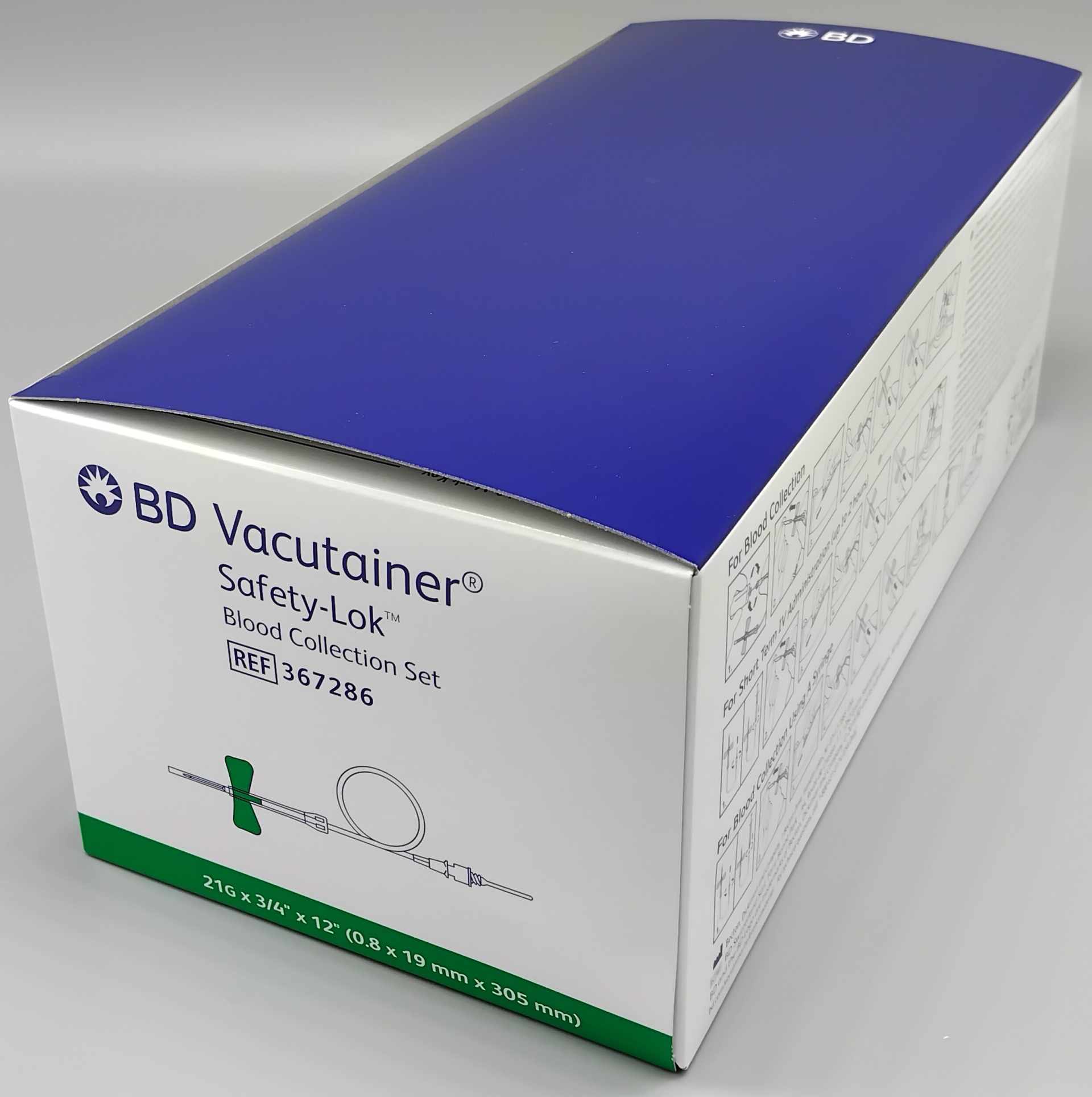 Set per prelievo sottovuoto con ago a farfalla g21x19mm e tubo di raccordo da 305mm, adattatore luer preassemblato, da utilizzare in combinazione ad una camicia portaprovette codice 364815.
