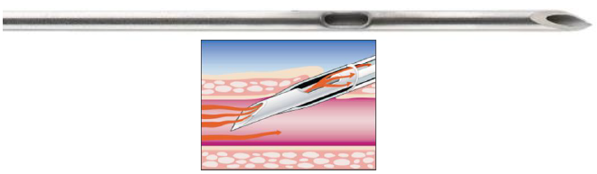 Aghi cannula a 2 vie con alette con punto d’iniezione.