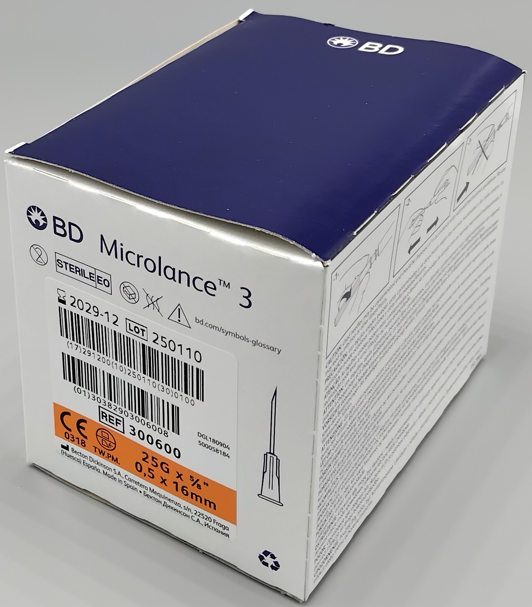 Aghi ipodermici cono luer realizzati in acciaio inossidabile AISI304 (per uso medicale) con parete sottile, levigata ad ultrasuoni e lubrificata con olio di silicone.